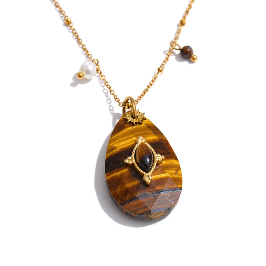 Collar Tigre de piedra de tigre natural con cadena pulida