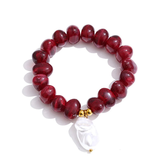 Pulsera de moda con cadena de perlas acrílicas y resina