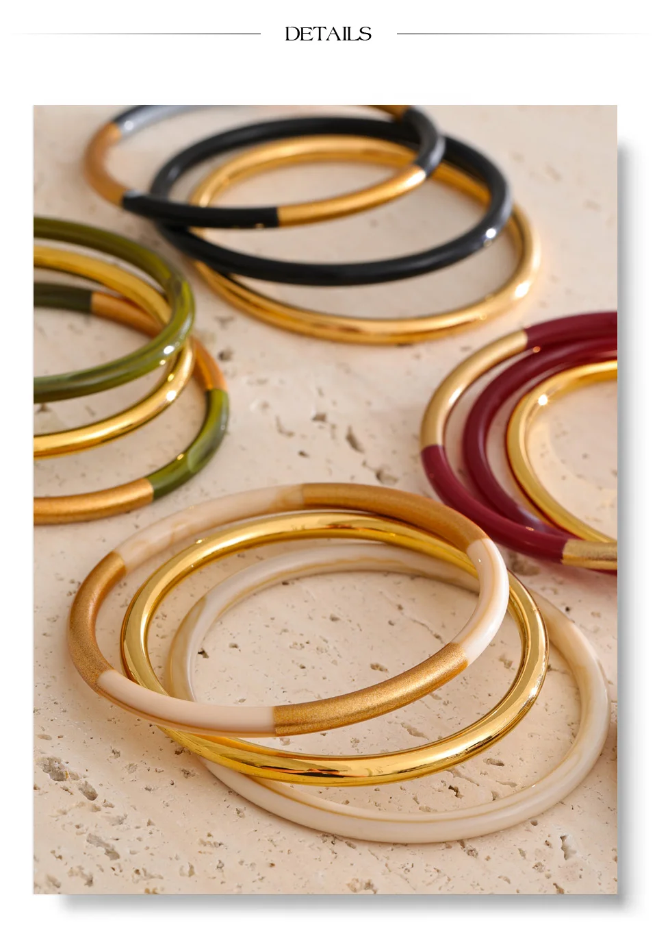 Juego de 1 pulsera minimalista de 65 mm con 3 círculos de resina superpuestos, chapada en oro de 18 quilates, de acero inoxidable