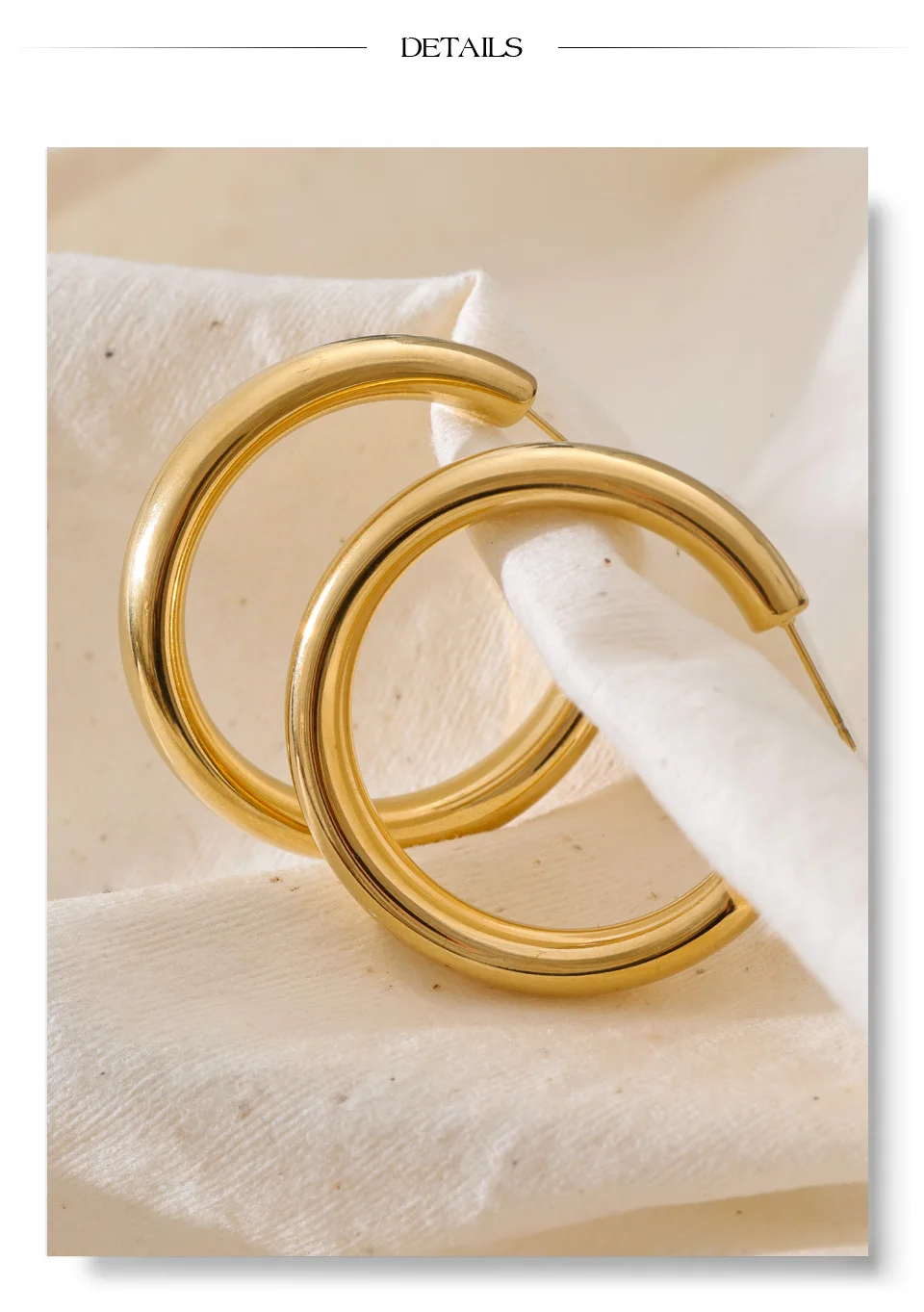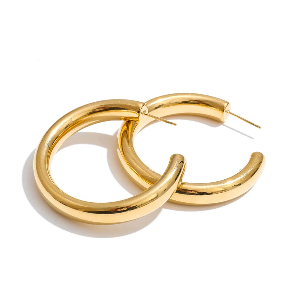 Pendientes de aro de 40 mm de acero inoxidable antialérgicos con forma de C, redondos, de metal brillante, para uso diario, joyería minimalista de alta calidad, resistente al agua.