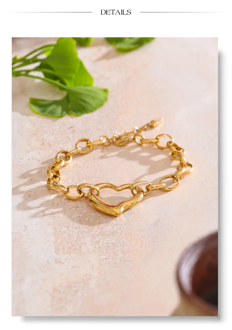 Recubierto con un lujoso baño de Oro PVD de 18kt, un proceso que garantiza un brillo duradero y una resistencia superior al desgaste.