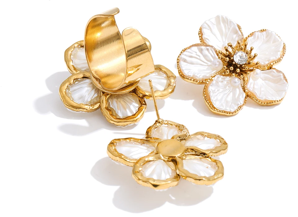 Todas nuestras joyas están fabricadas con acero inoxidable, protegido por un revestimiento de cromo que evita la oxidación y asegura su durabilidad. Las piezas doradas cuentan además con un elegante baño de oro, combinando estilo y resistencia para que luzcan siempre como el primer día.