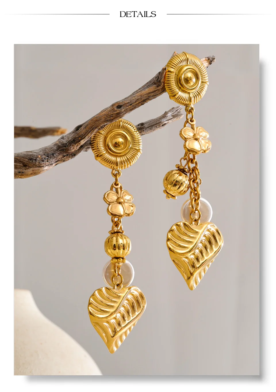 Pendientes colgantes de acero inoxidable con forma de corazón y flor para mujer, hechos a mano, con baño de PVD en metal, joyería moderna.