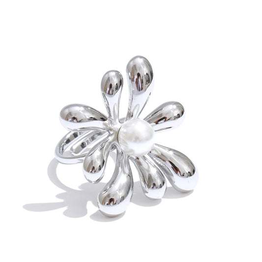 Anillo Dalia ajustable con diseño de esmalte blanco