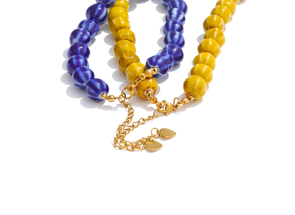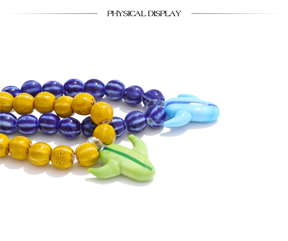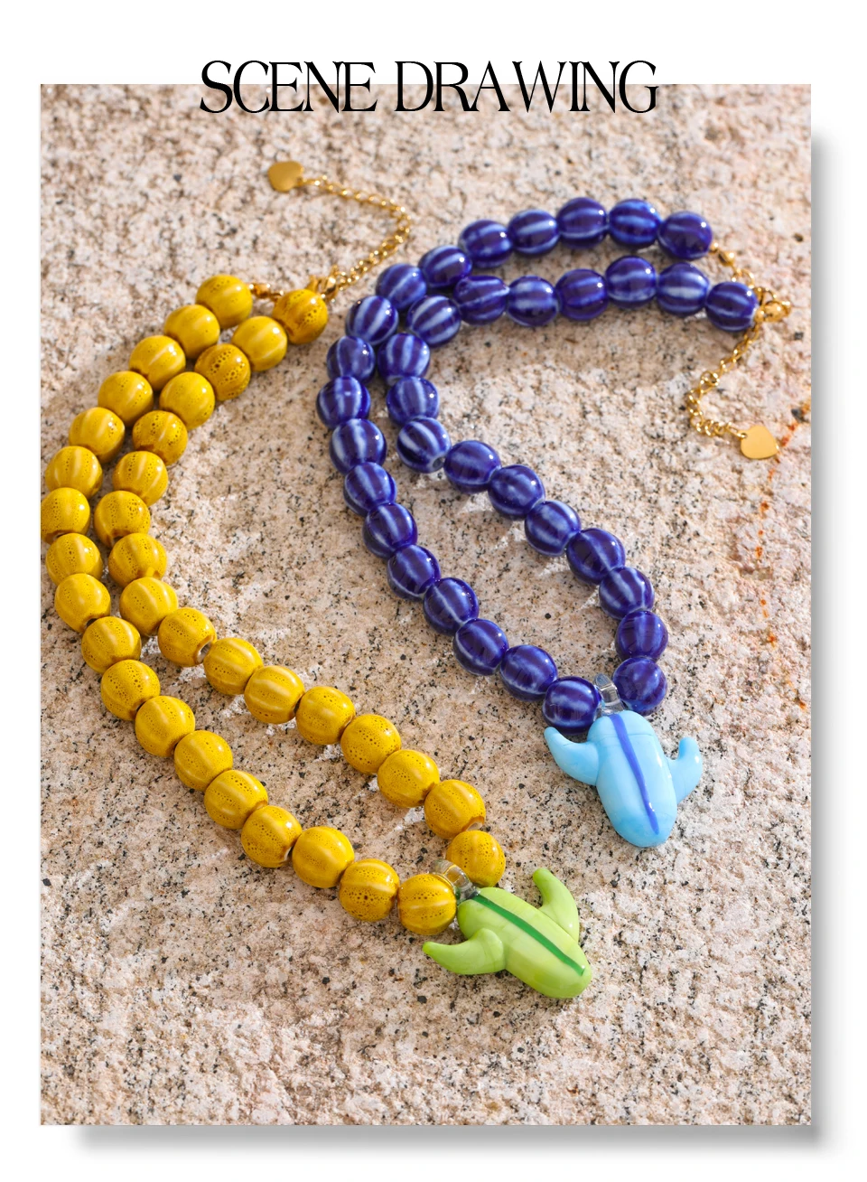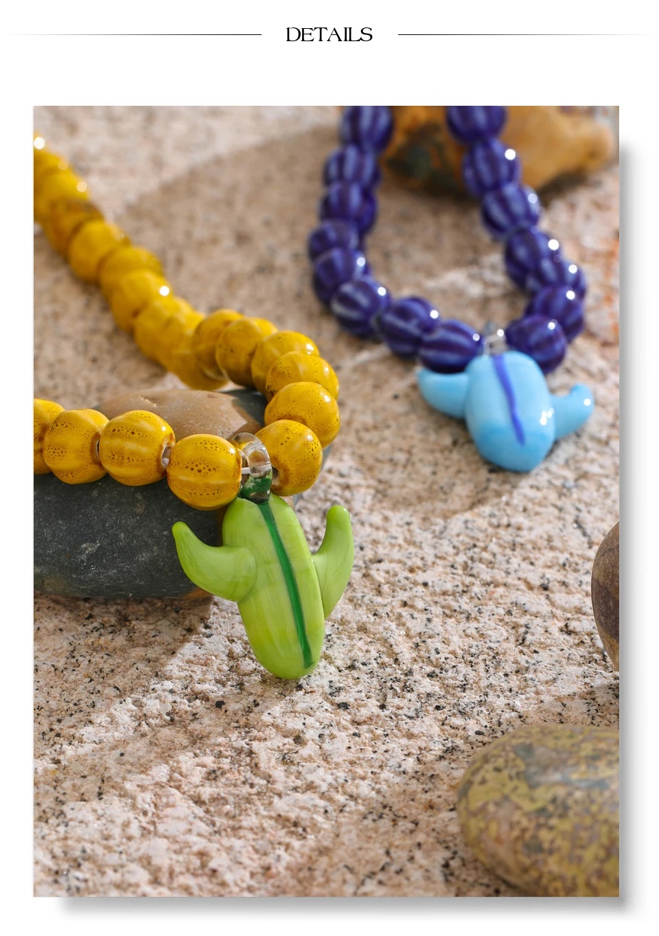 Colgante de cactus con cuentas de cerámica azul y amarilla, collar hecho a mano de verano.