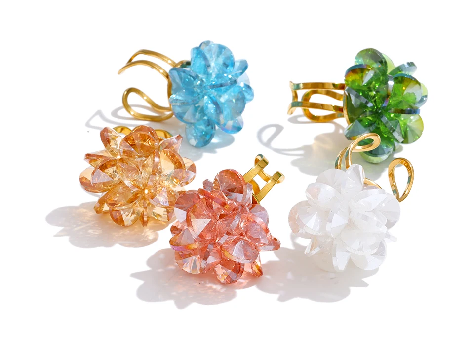 Anillo abierto ajustable hecho a mano con bola de cristal grande multicolor, de acero inoxidable, estilo Y2K.