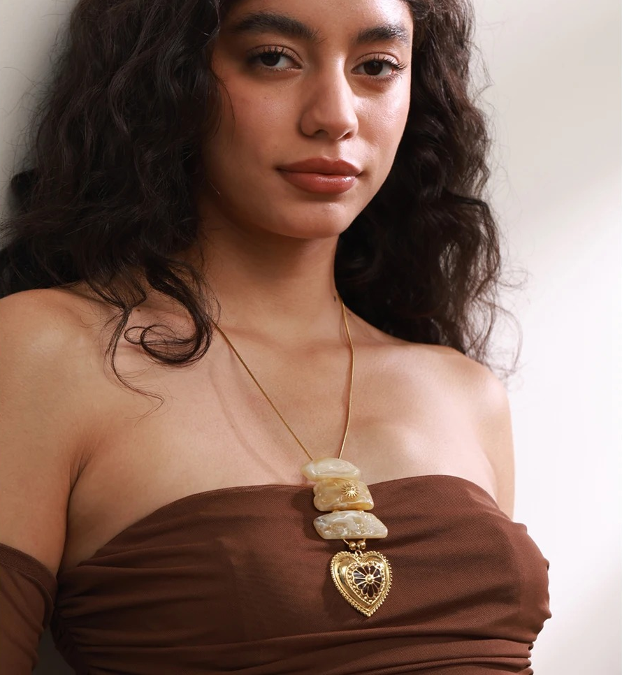 Collar con colgante de corazón rectangular de resina de imitación de piedra, exclusivo, de acero inoxidable, joyería de moda, resistente al agua.