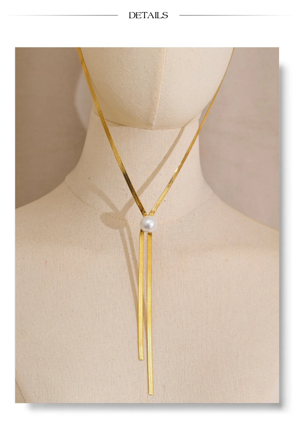 Collar largo de acero inoxidable de 70 cm con perlas de imitación y cadena de serpiente, estilo otoño-invierno, novedad.