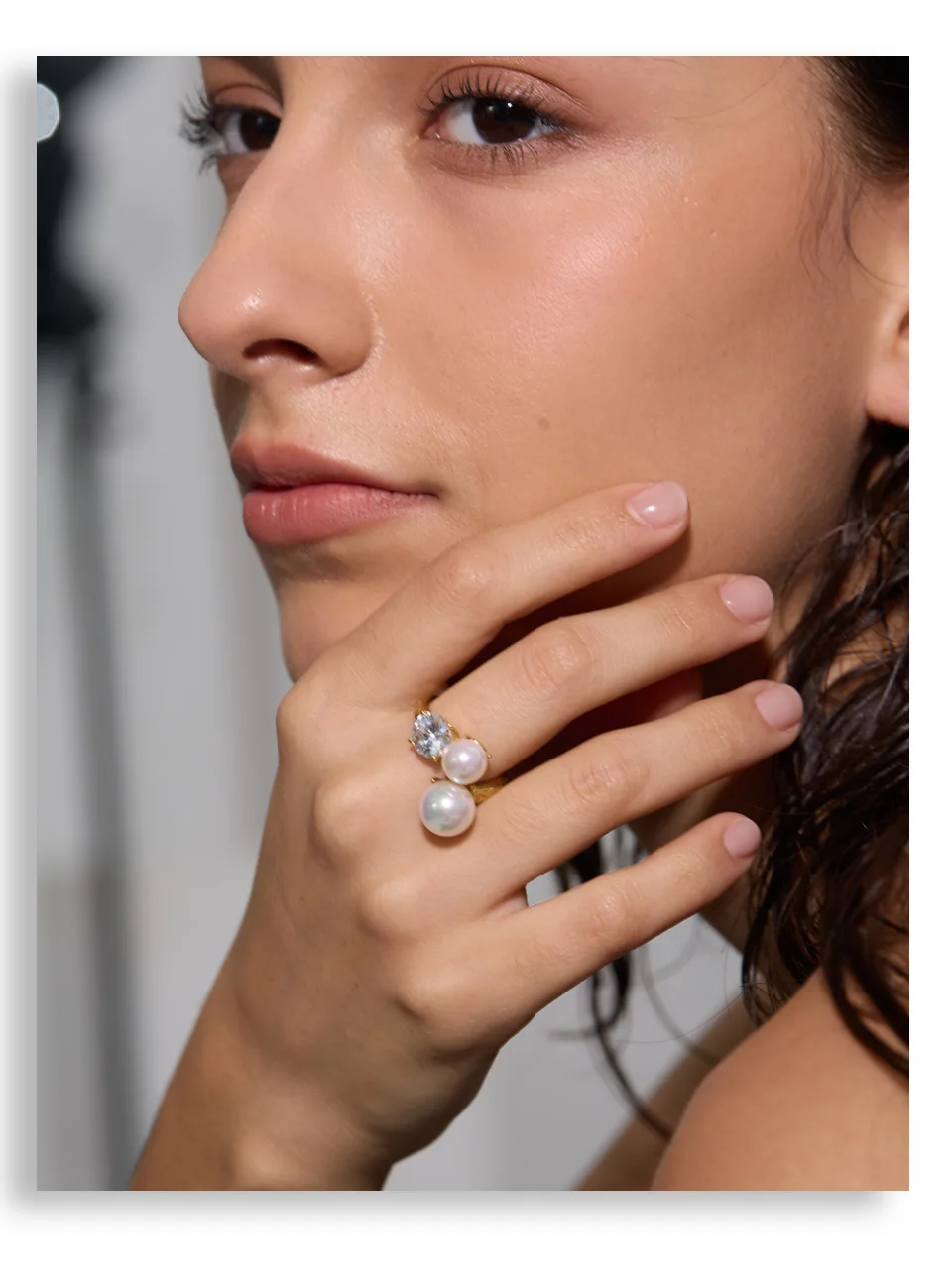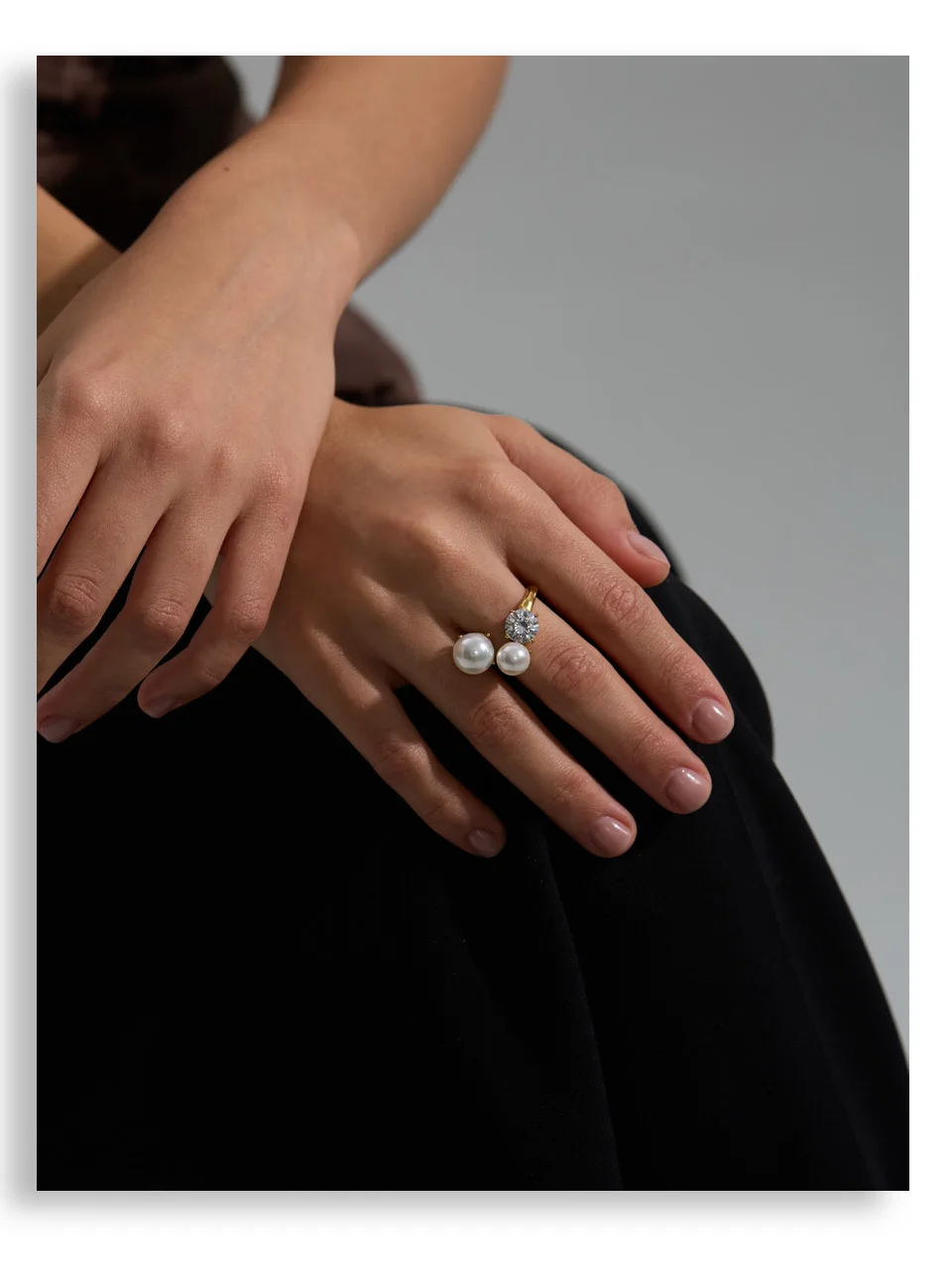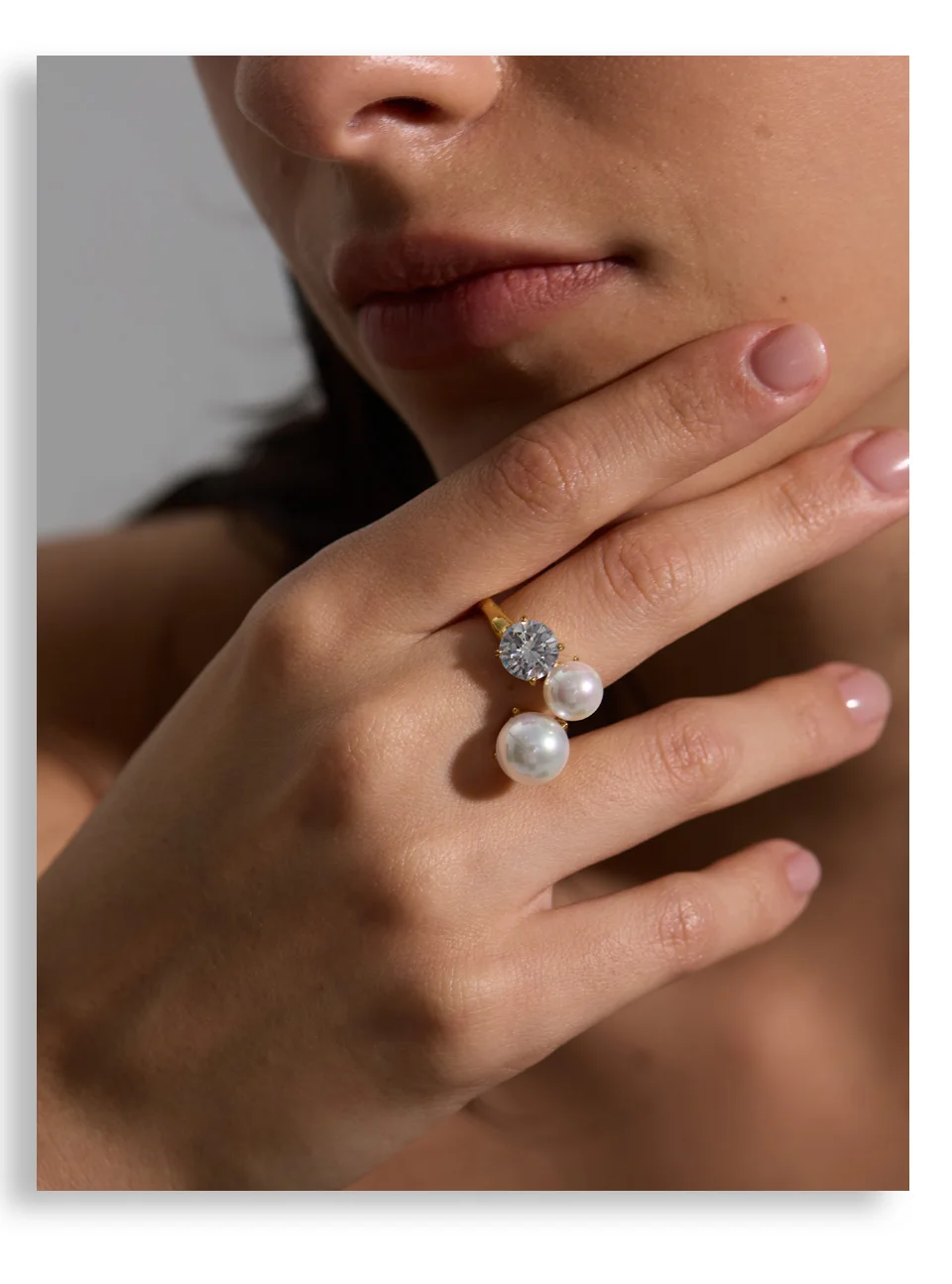 Anillo Burberry ajustable de perlas coreanas con circonita