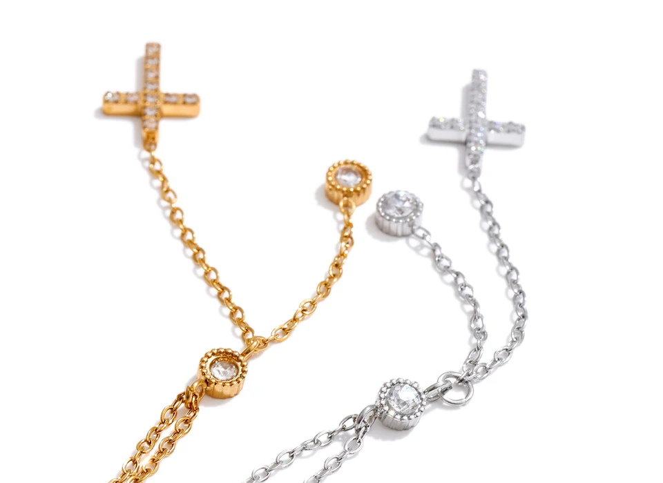 Todas nuestras joyas están fabricadas con acero inoxidable, protegido por un revestimiento de cromo que evita la oxidación y asegura su durabilidad. Las piezas doradas cuentan además con un elegante baño de oro, combinando estilo y resistencia para que luzcan siempre como el primer día.