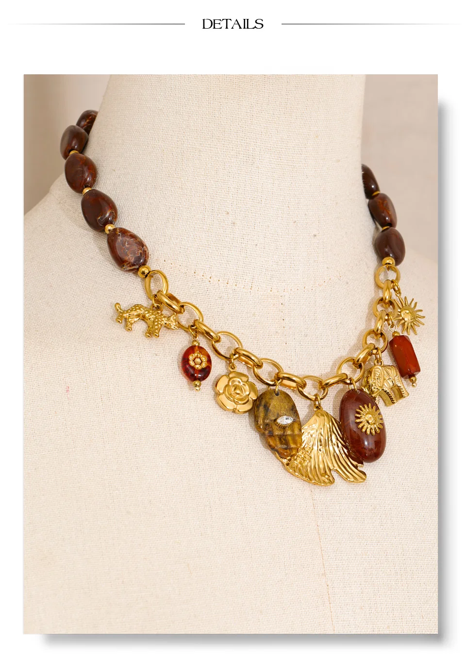 Nueva joyería hecha a mano de resina acrílica con cuentas, cadena de flores, palmeras, sol, dije de gota, collar de acero inoxidable, accesorios llamativos.