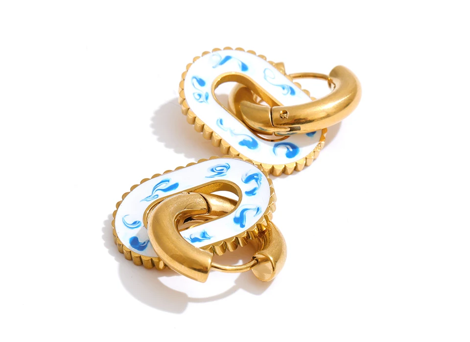 Pendientes de aro geométricos de acero inoxidable con baño de PVD dorado de 18 quilates, joyería elegante, única y resistente al agua para uso diario.