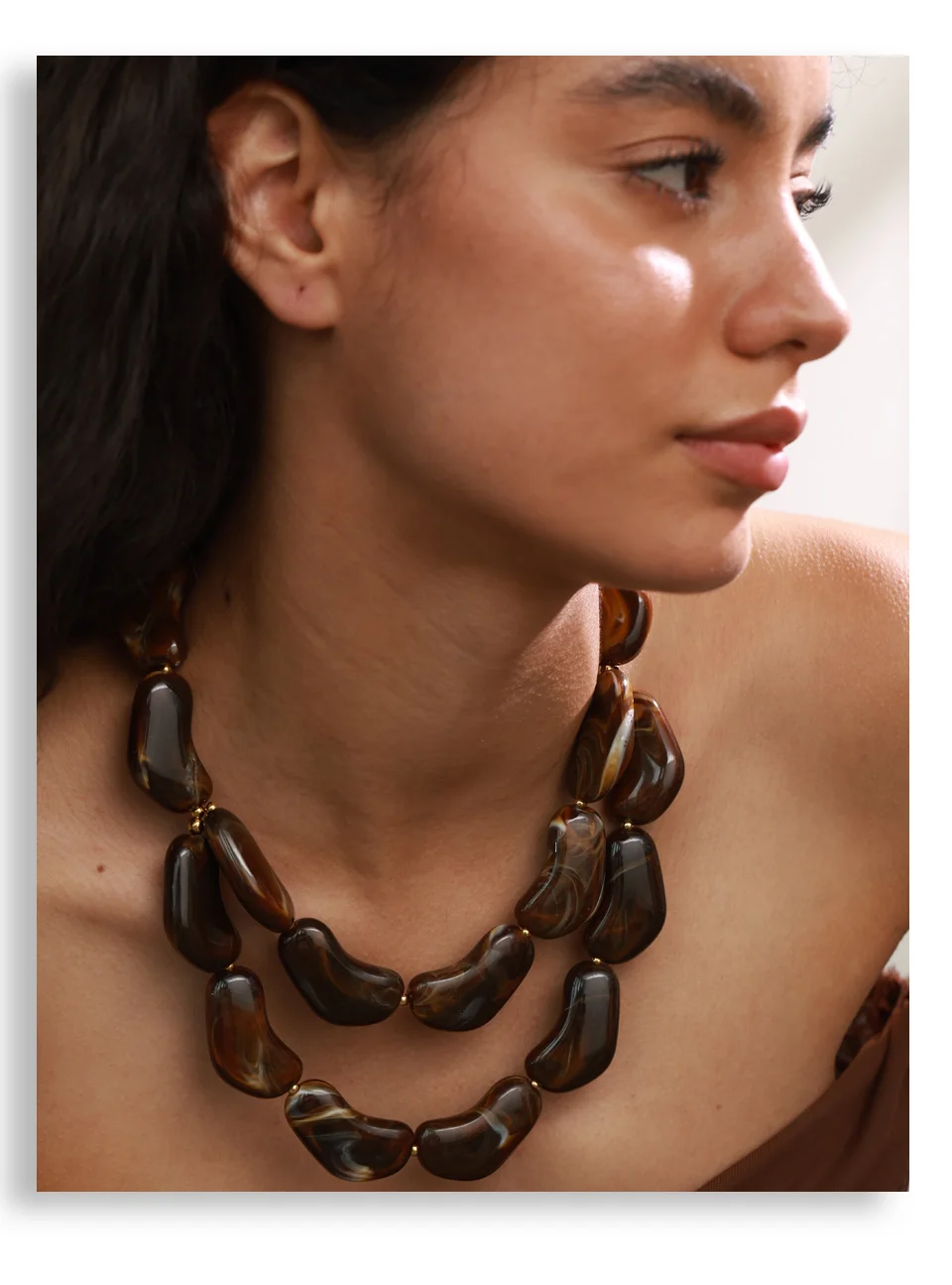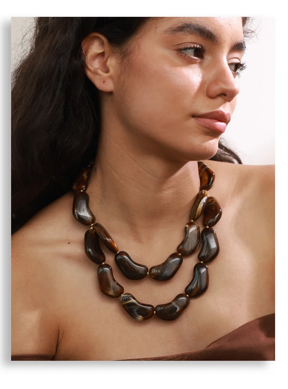 Collar de resina de doble capa con diseño exclusivo de Marbber para mujer, resistente al agua, hecho a mano.