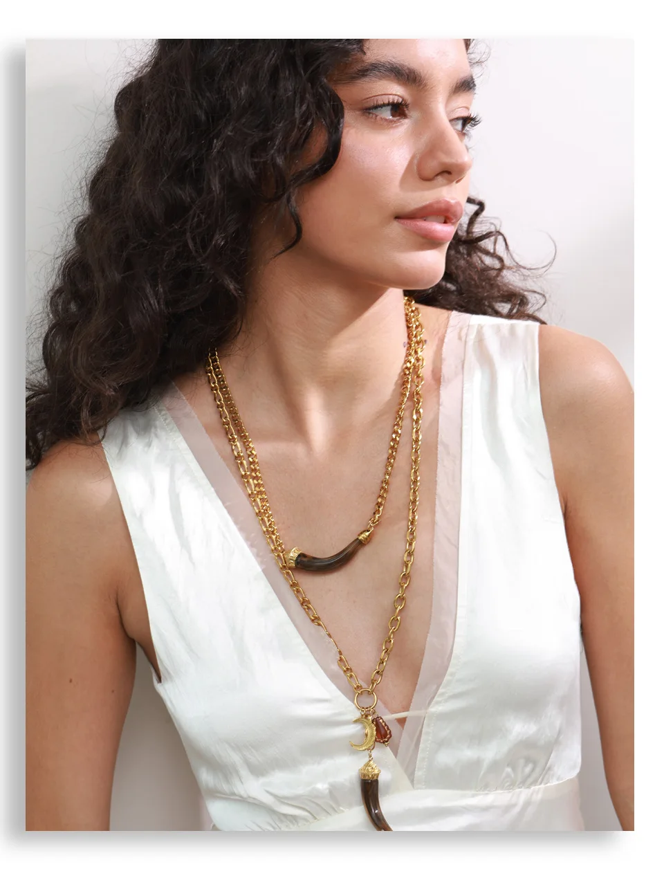 Collar con colgante de cuernos de resina chapado en oro PVD de 18K