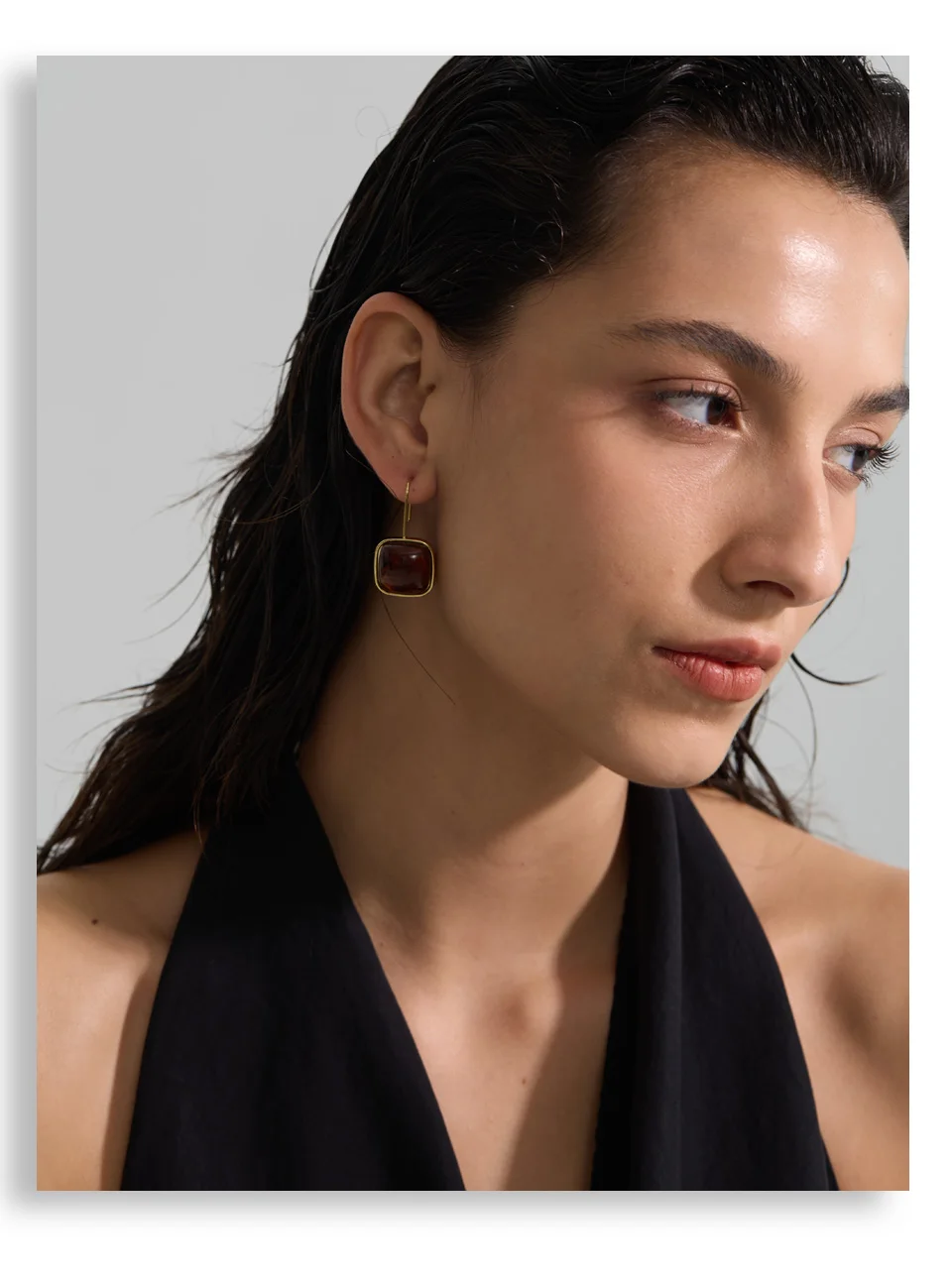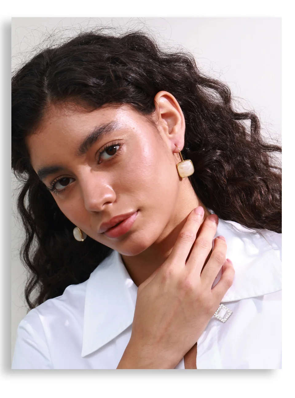 Pendientes colgantes cuadrados de resina beige y ámbar de acero inoxidable, versátiles, de uso diario, joyería de moda, accesorios económicos