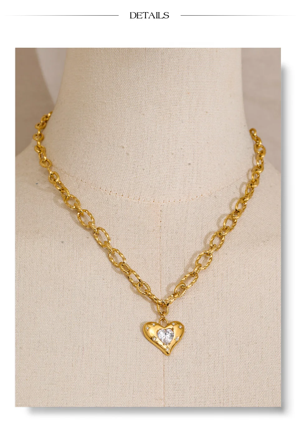 Collar con colgante de corazón de circonita brillante de acero inoxidable de alta calidad, chapado en PVD de 16 quilates, delicado, recién llegado, joyería con abalorio, regalo.