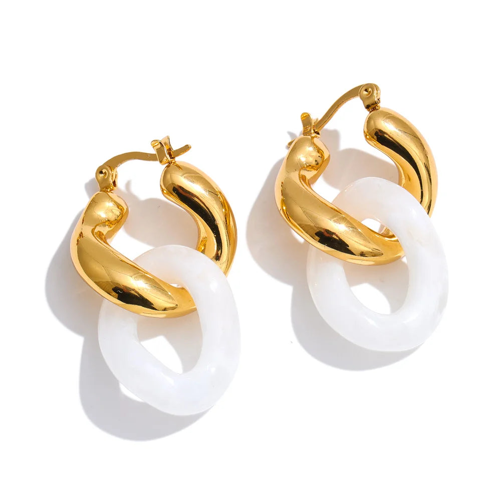 Pendientes de aro redondos y retorcidos de resina acrílica y ámbar blanco Yhpup para mujer, de acero inoxidable, joyería impermeable de uso diario.